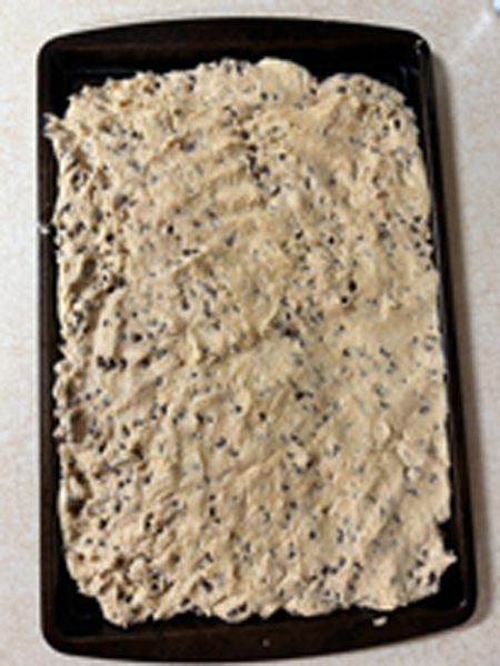 Pour all of the dough onto the baking sheet and spread it out evenly across the entire surface using your